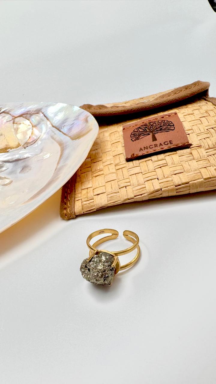 Bague Pyrite Argent 925 platiné Or 18K