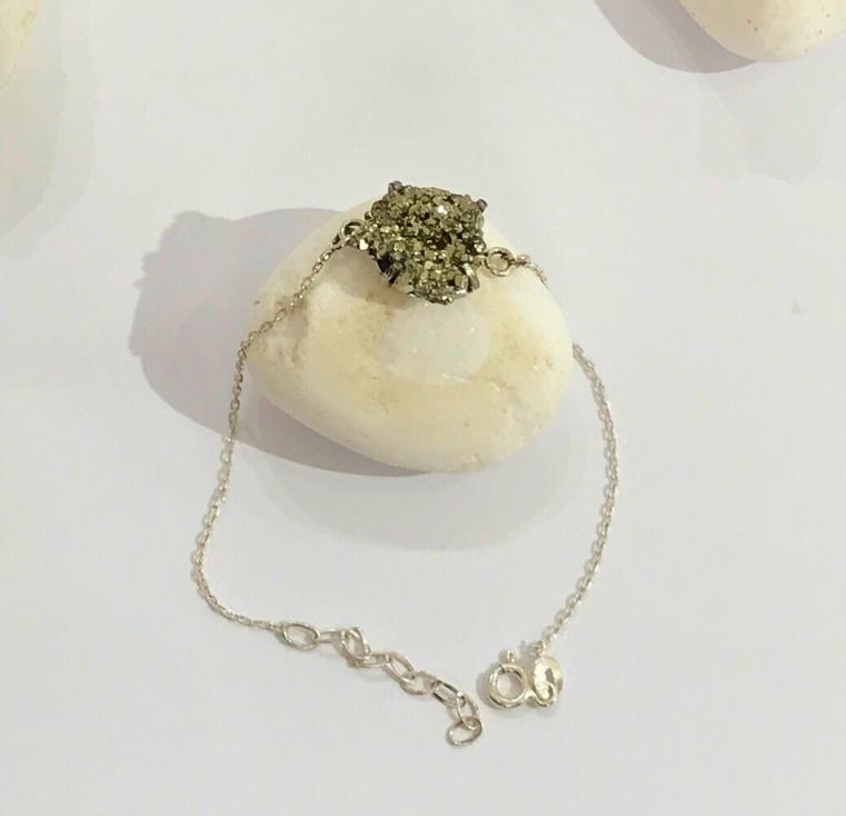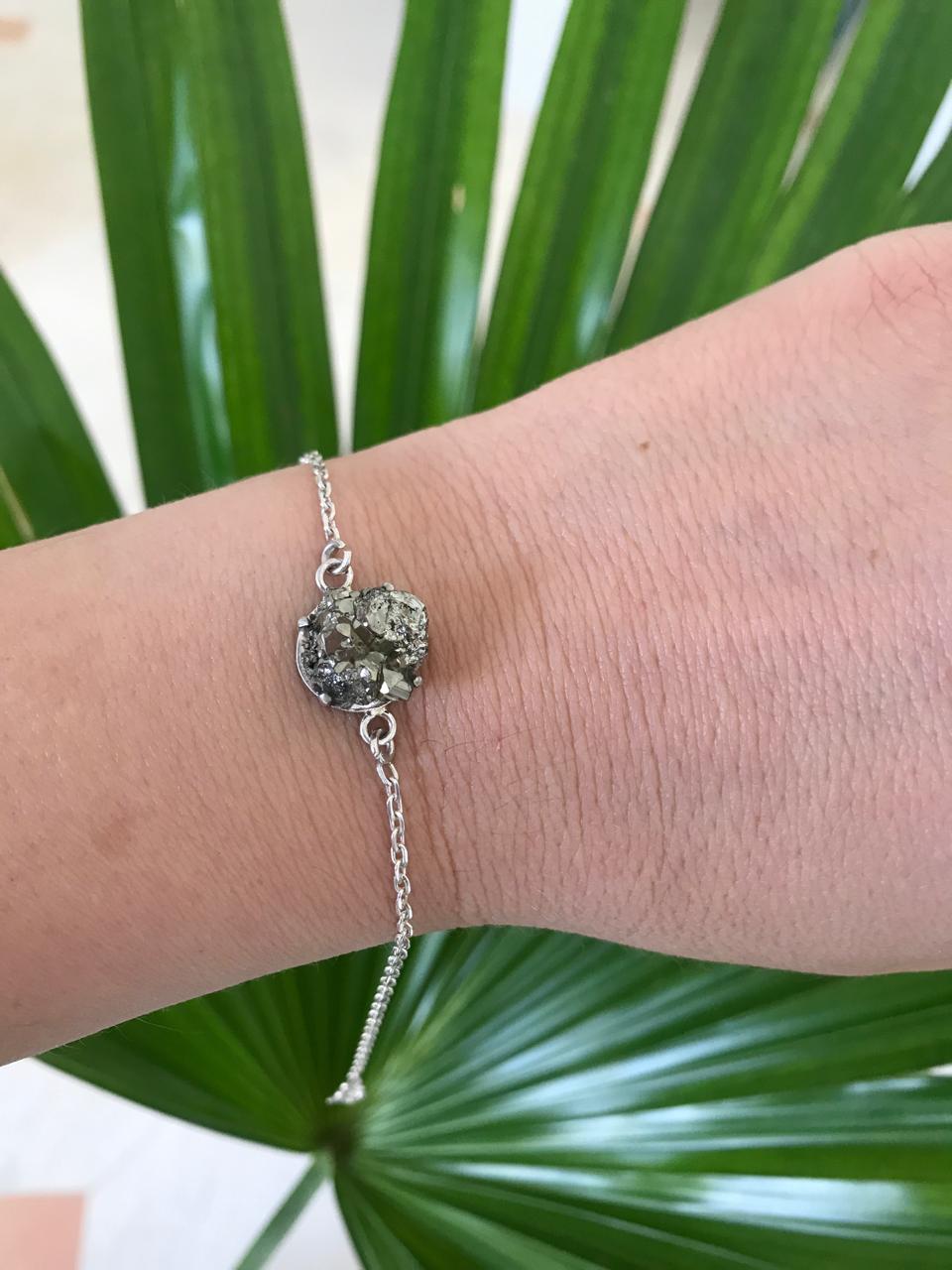 Laisse-toi séduire par la puissance raffinée de ce bracelet en argent 925 sertie d’une pyrite naturelle, pierre de protection et de prospérité.