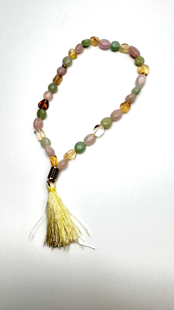 Ensemble, ces trois pierres créent une synergie puissante qui vous aide à cultiver la positivité, l’amour de soi et la réussite dans tous les aspects de votre vie. Ce chapelet est bien plus qu’un simple accessoire ; il est un guide spirituel qui vous accompagne vers un état de bien-être profond.