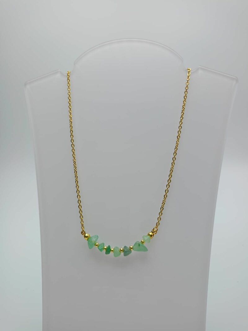 Un élégant collier en Aventurine Verte. Il attire l’abondance, la chance et le bien-être tout en favorisant la compassion et la paix intérieure.